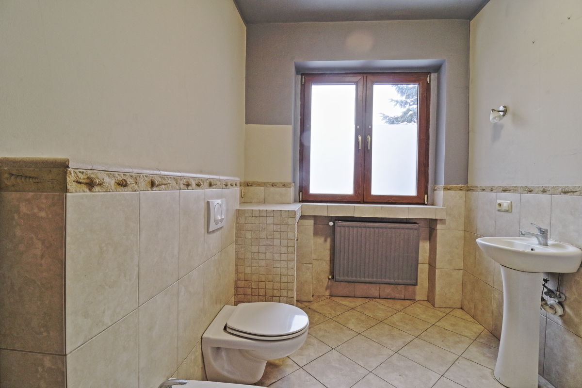 siedem pokoi , duża kuchnia , taras , ogródek , mała piwnica , kotłowania / nowoczesny piec gazowy / , dwie łazienki